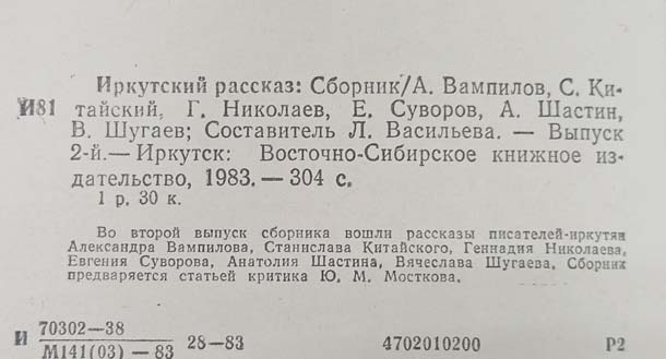 Книга «Иркутский рассказ» сборник