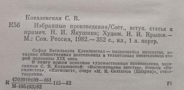 Книга «Избранные произведения» Ковалевская С.В.