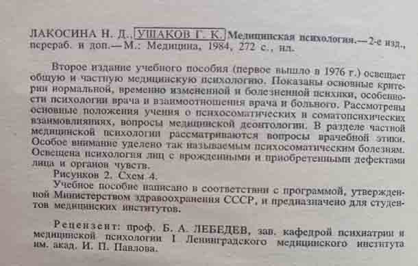 Книга «Медицинская психология» Лакосина Н.Д., Ушаков Г.К.