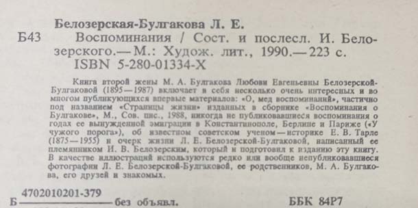 Книга «Воспоминания» Белозерская — Булгакова Л.Е.