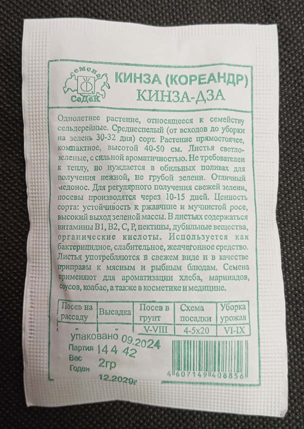 Семена кориандр «Кинза-дза»