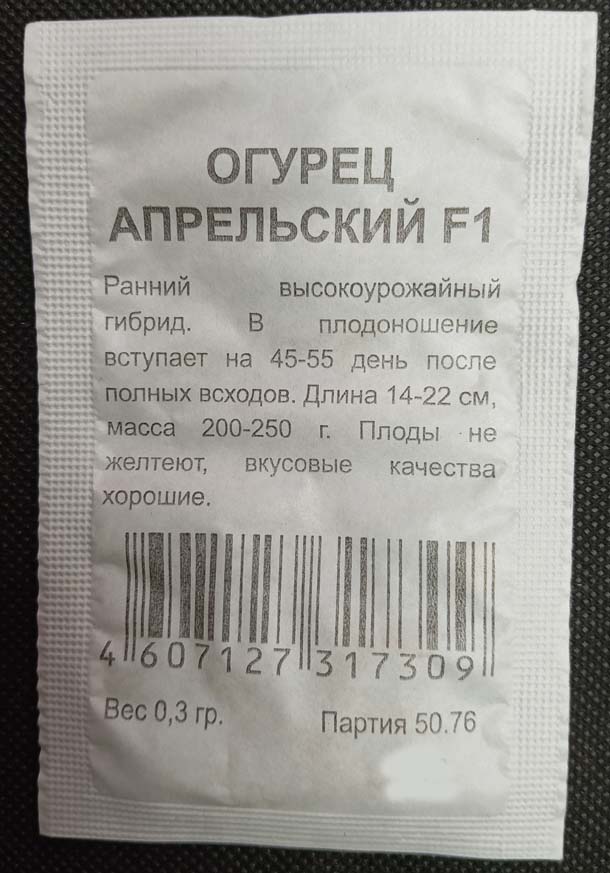 Белый пакет. Ранний, тепличный, холодостойкий, партенокарпик. 13-22 см. F1.