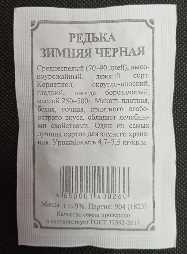 Семена редька зимняя круглая «Чёрная»