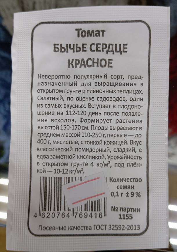 Для открытого и защищённого грунта. Белый пакет.